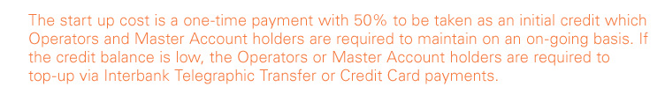 The Online solution is designed to support a multi-tiered program. The Master Account holder is at the top of the of the business matrix. The Master Account holder can run their own call shop operations as well as resell their wholesale service to support Tier 2 and Tier 3 operators. The Master Account holder is required to maintain a positive credit balance to operate the call shop service. All call shops under the Master Account holder will share the credit balance in the Master Account. The Master Account holders can create their separate rate tables for their own customers and for resellers to benefit from higher margins from marked-up rates. The wholesale rate table from SmartTel can be dynamic and new rates can be updated to the Online SmartKiosk seamlessly. |